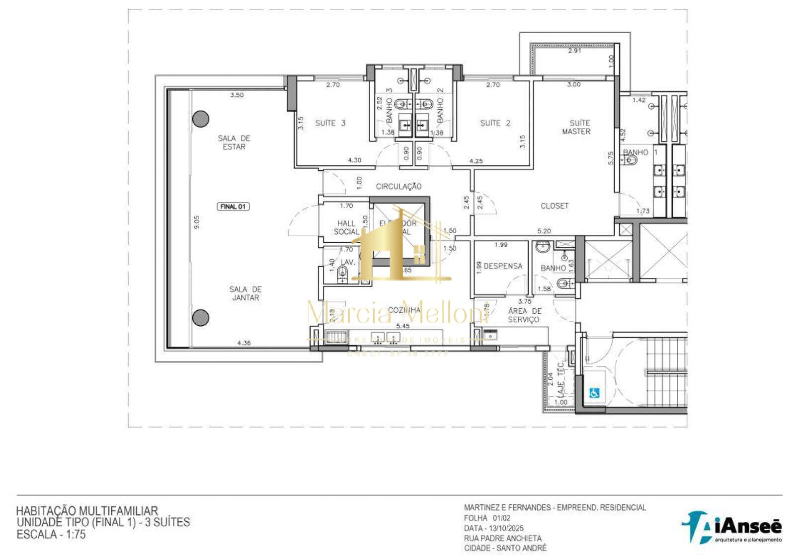 Área privativa___177,15 m2 + 3,13 m2 (deposito) = 180,28 m2